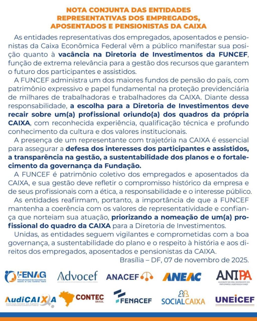 Nota conjunta das entidades representativas dos empregados, aposentados e pensionistas da CAIXA